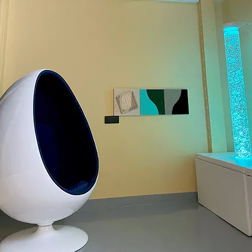 - des objets sensoriels adaptés, baptisés fidgets, à palper sur les murs, stimulent de façon douce et rassurante.